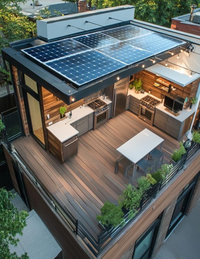 همچنین نصب پنل خورشیدی اختصاصی برای تأمین برق کل نورپردازی روف گاردن میتواند هزینههای ماهانه برق را به حداقل برساند و در بلندمدت سرمایهگذاری ارزشمندی باشد.